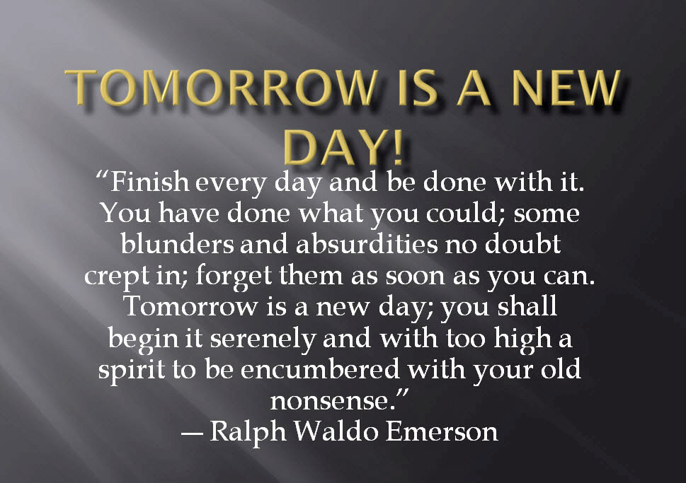 Mid Week Wisdom Posted on May 14, 2014 by Michael D Thomas Sometimes I get frustrated with myself because I can’t complete everything I want to in a given day. So I really like this quote because it gives me a gentle reminder (or excuse depending on the day), that tomorrow is truly a new beginning. Share this:TweetMoreLike Loading... Related
